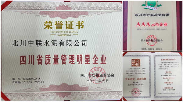 西南水泥所屬四川北川中聯質控部堅持“品質為基”,持續推進質量品牌建設。近年來,質控部員工以扎實的技術功底、良好的檢驗水平和職業素養分別榮獲“美諾福杯”2022年全國第十八次水泥化學分析大對比和2023年全國第十九次水泥品質指標檢驗大對比“優良獎”。2023年9月,為公司贏得了四川省質量監督協會授予的“匠心企業·品質先鋒”和“四川省質量管理明星企業”榮譽稱號。