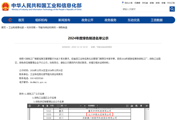 近日(ri),國(guo)家(jia)工(gong)業和信息化部(bu)公示(shi)了《2024年度綠色(se)制造名單(dan)》,西南水泥所屬北川中(zhong)聯水泥有限公司獲評國(guo)家(jia)級“綠色(se)工(gong)廠”。