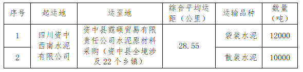 2.1 詢比(bi)項(xiang)目: 川南資(zi)宜(yi)-資(zi)中西南至(zhi)資(zi)中霆碩土地改(gai)造項(xiang)目水泥運輸詢比(bi)采(cai)購
